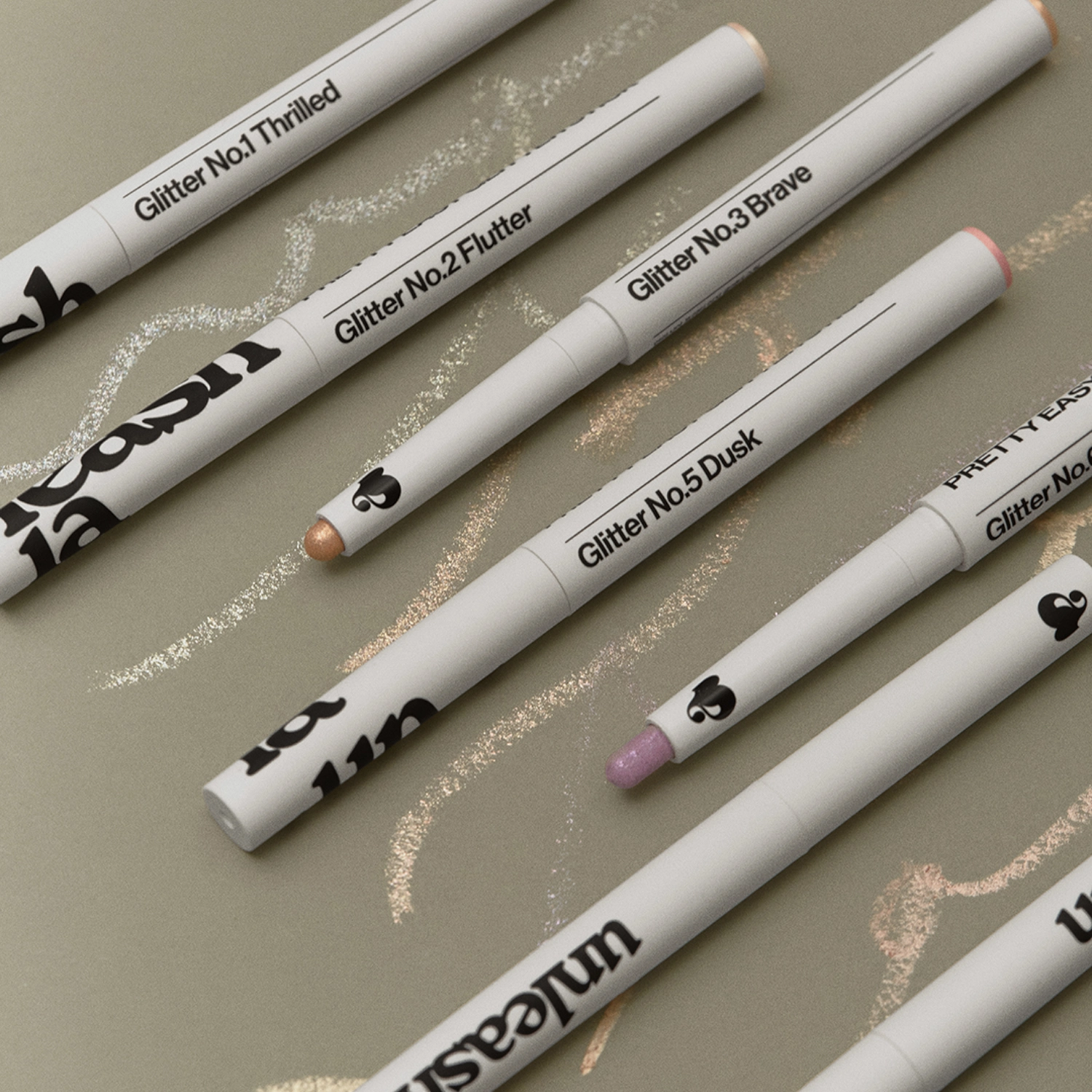 Unleashia - Pretty Easy Glitter Stick - 2 Flutter - šviesaus atspalvio blizgus akių pieštukas. Turi automatinę pakuotę, todėl nereikia drožti. Sudėtyje yra blizgių dalelių, kurios žėri ant vokų.Kreminė formulė užtikrina ilgalaikį išsilaikymą. Pieštukas gali būti naudojamas kaip blizgus akių šešėlis arba kaip akių kontūro linijai nubrėžti prie blakstienų. Produktas tinkamas veganams.