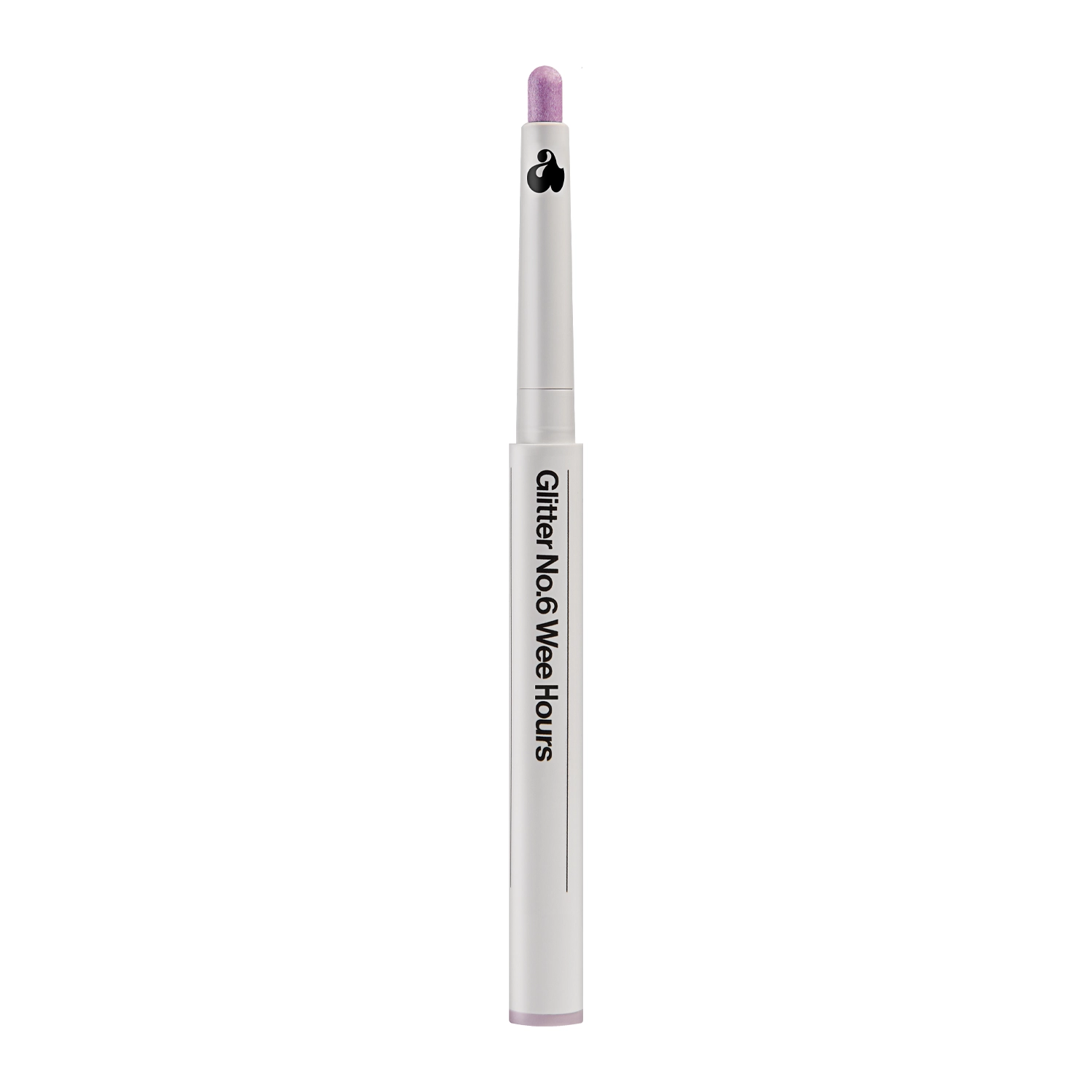 Unleashia - Pretty Easy Glitter Stick - 6 Wee Hours - blizgus akių pieštukas. Jis turi automatinę pakuotę, todėl jo nereikia tempti. Jis yra alyvinio pusiau skaidraus atspalvio su įterptais sidabro blizgučiais. Palieka blizgantį atspalvį. Jo tekstūra yra kreminė ir ilgai išliekanti. Pieštuką galima naudoti kaip blizgantį akcentą akių kampučiuose arba naudoti blakstienų linijai paryškinti. Produktas yra veganiškas.