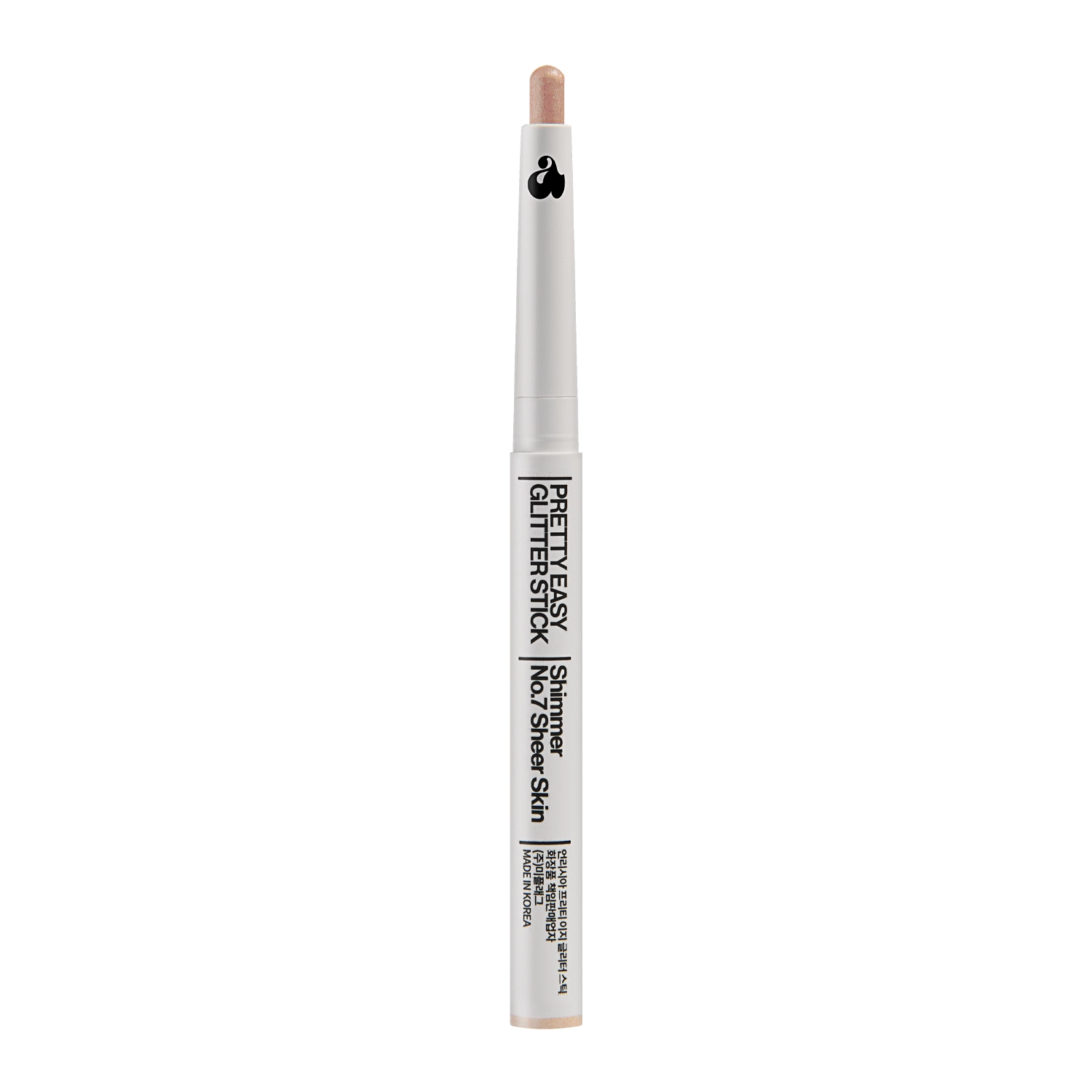 Unleashia - Pretty Easy Glitter Stick - 7 Sheer Skin - blizgus akių pieštukas. Turi automatinę pakuotę, todėl yra patogus naudoti. Pieštukas turi smėlio atspalvį su įterptomis auksinėmis blizgiomis dalelėmis. Spalva yra universali ir nesenstanti. Tekstūra kreminė ir ilgalaikė. Pieštukas gali būti naudojamas kaip blizgus akių šešėlis arba kaip akių kontūro linijai prie blakstienų. Produktas tinkamas veganams.