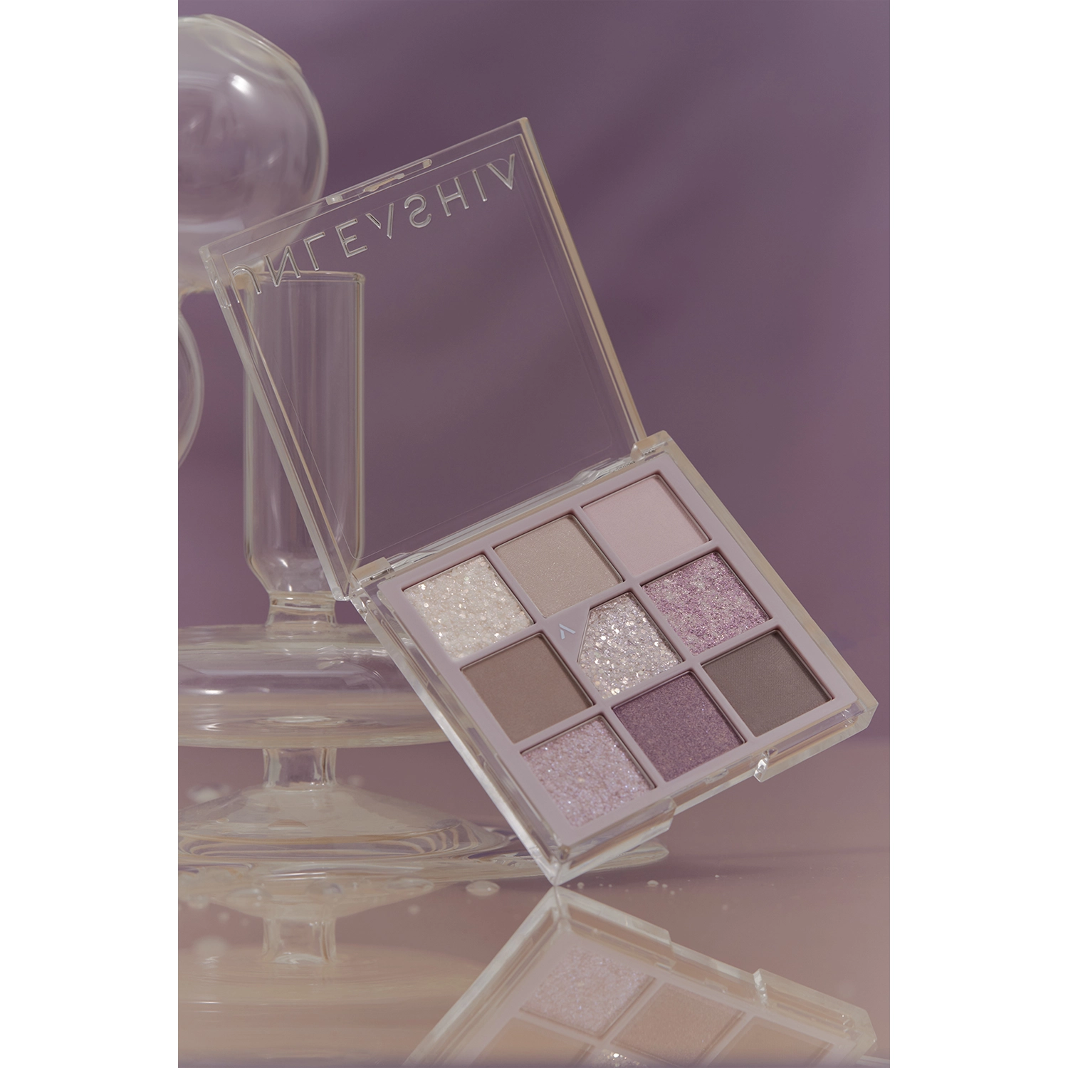 Unleashia - Glitterpedia Eye Palette - 4 All of Lavender Fog - akių šešėlių paletė. Joje yra 9 atspalviai su blizgiu ir matiniu užbaigimu. Paletė išlaikyta vėsioje, levandų spalvų gamoje. Leidžia sukurti prislopintą, romantišką makiažą. Šešėlių formulė yra ilgalaikė ir leidžia reguliuoti spalvos intensyvumą. Produktas tinkamas veganams.