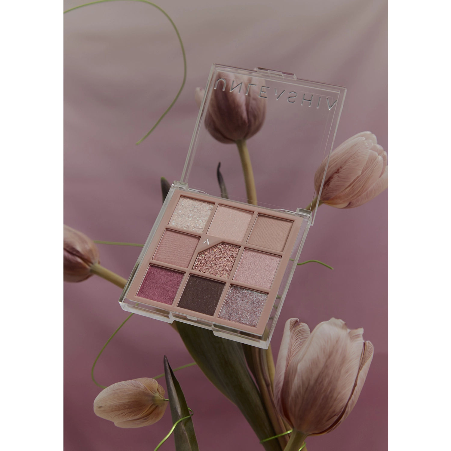 - 9 matinių ir blizgių rožinės spalvos šešėlių paletė
